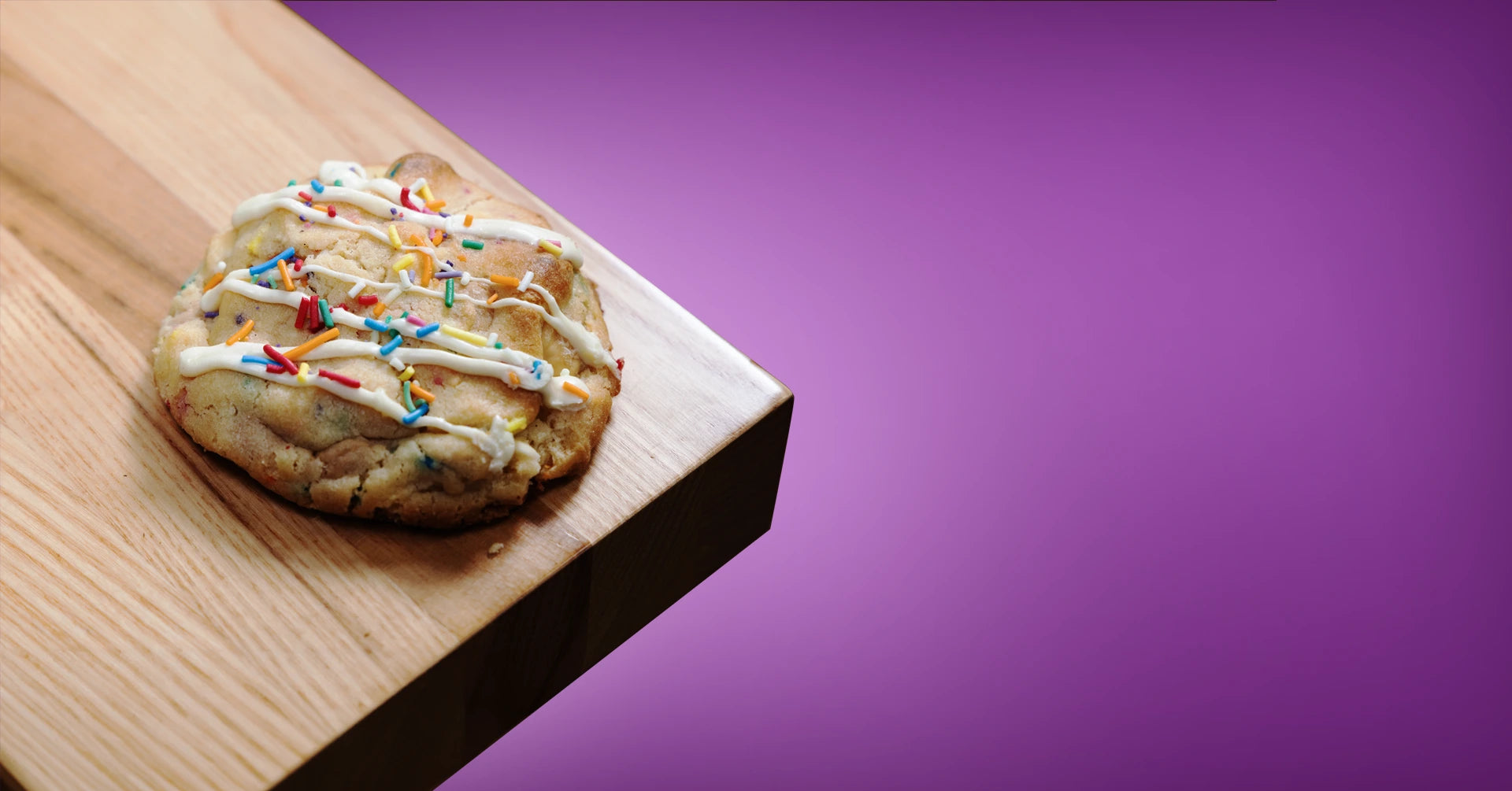 Birthday Cake CookieCelebrate every bite with our Birthday Cake Cookie, loaded with caramelised white chocolate, creamy white chocolate chips, and colourful sprinkles throughout. Ingredients: